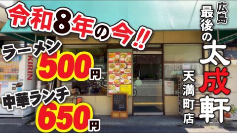 【令和8年現在!!!ラーメン500円!!ランチ650円!!!】ランチの宝庫!!天満町にある太成軒!!!!!宇品店、出汐店が閉店した今!!!残るはここ天満町店のみ!!