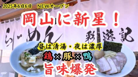 【岡山グルメ】岡山に新星!鶏×豚×鴨の旨味爆発『らーめん彩遊記』2025年6日6日 NEWオープン